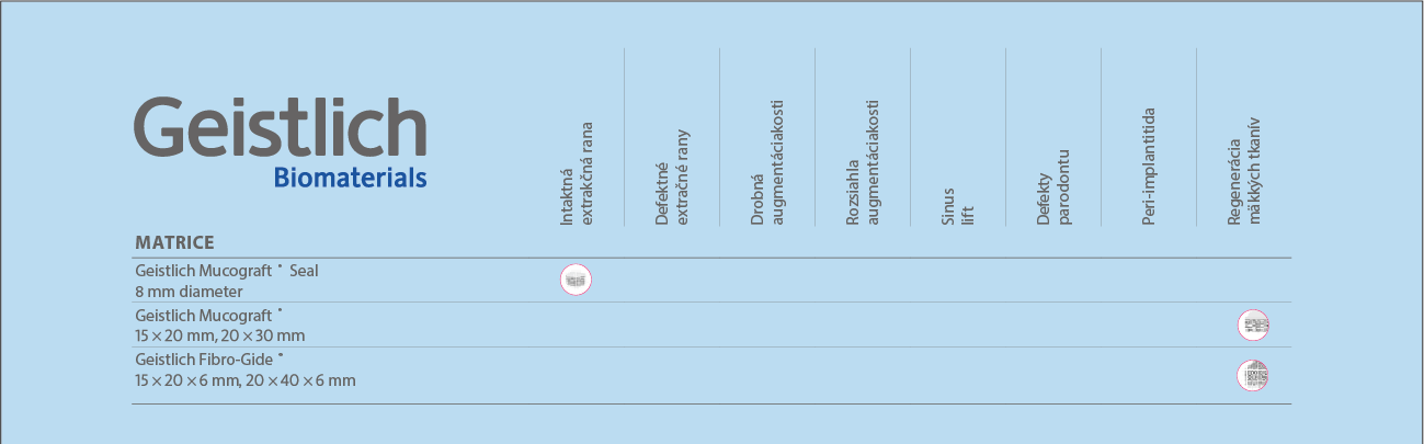 • Geistlich Mucograft® – riešenie pre rekonštrukciu a posilnenie mäkkých tkanív.